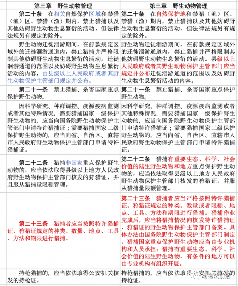 本文转载自微信公众号:动物法前沿,“重磅!《野生动物保护法》修订前后全文对比”
