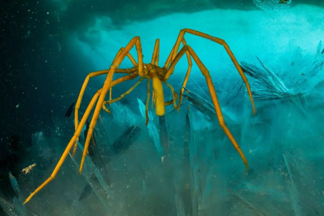 这种海蜘蛛(Colossendeis megalonyx)是另一个神秘的“极化巨大症”(polar gigantism)案例:它们在其他海域很小,但在南极洲的海蜘蛛的腿长达七英寸。