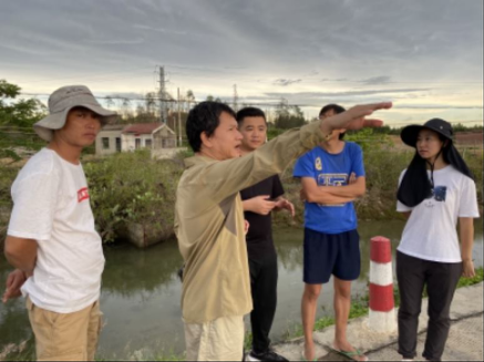 在拟种植河岸区域和虾塘区域考察